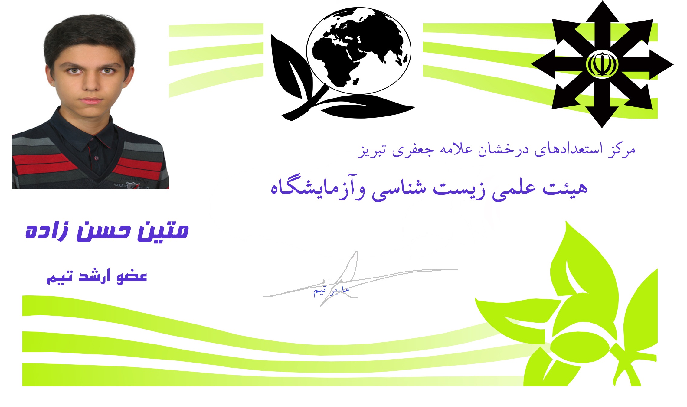 - دانش آموز پایه اول دبیرستان استعداد های درخشان علامه جعفری تبریز